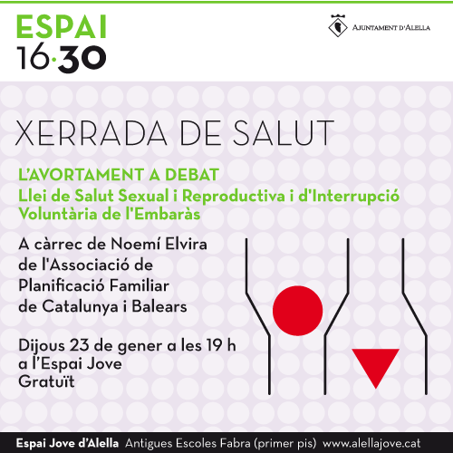Xerrada. “Llei de Salut Sexual i Reproductiva i d'Interrupció de l'Embaràs. A càrrec de Noemí Elvira de l'Associació de Planificació Familiar de Catalunya i Balears.