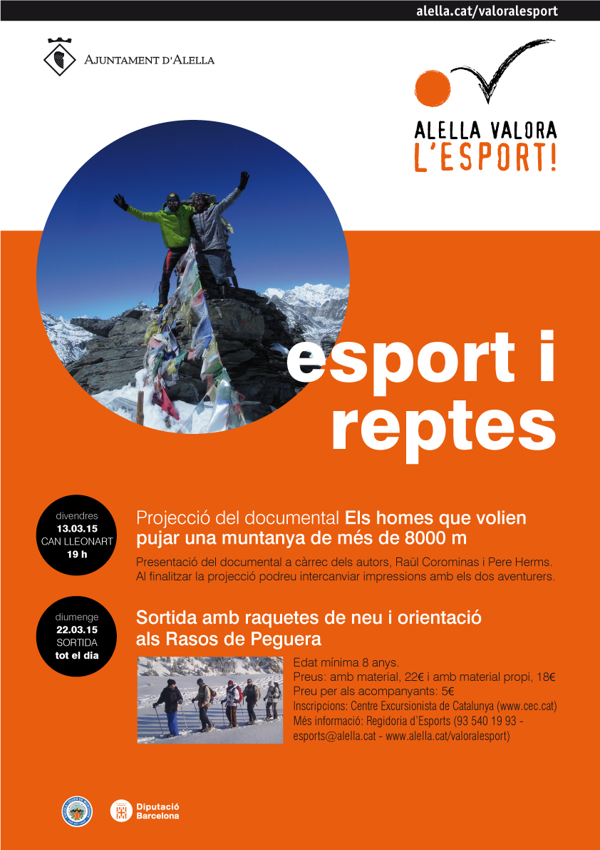 Cinèforum HimàlaiaAquesta és la historia d'en Raül i en Pere, un alpinista i un cineasta units per un somni comú: pujar per primera vegada a una muntanya de més de 8.000 m. Durant mesos, cineasta i alpinista es desplacen a la recerca d'experiències vitals per l'Himàlaia per acabar ascendint la vuitena muntanya més alta del món, el Manaslu de 8.163 m. Per ambdós, es tracta de la primera ascensió a una muntanya de més de 8.000 metres. El film no tant sols relata les vivències i aventures dels expedicionaris, sinó que també intenta indagar en les qüestions més profundes i transcendentals que s'amaguen darrera de la necessitat espiritual i indefugible de vagar per les muntanyes.