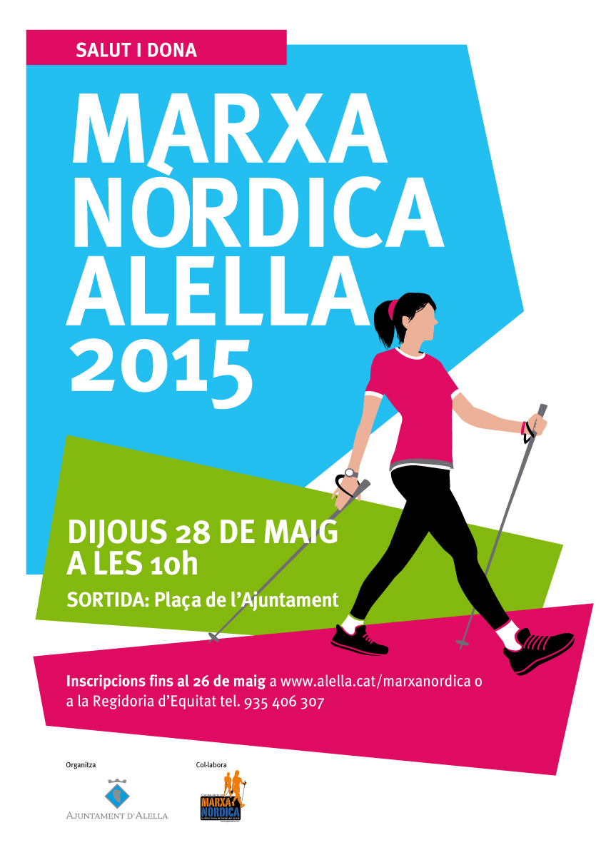 Marxa Nòrdica. Activitat Gratuïta. Màxim 30 places. Inscripcions fins al 26 de maig. Commemoració del Dia Internacional d'Acció de la Salut de les Dones que se celebra el 28 de maig. Activitat pensada per promoure els hàbits saludables i la qualitat de vida de les dones i homes del municipi: una marxa nòrdica pel poble. La marxa és oberta a tothom, homes i dones, i compta amb la col·laboració de l'Espai Calma d'Alella. Més informació i inscripcions en aquest enllaç.