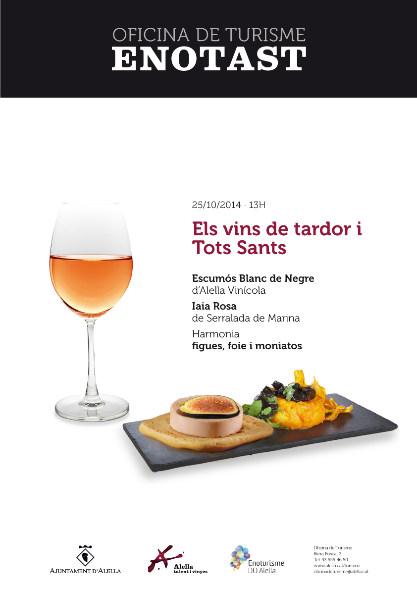 L'Enotast es tracta d'una trobada oberta, sense inscripció prèvia, a l'Enoteca de l'Oficina de Turisme, en la qual passem junts una estona (1 hora aproximadament) parlant i tastant vins DO Alella. La professional que s'encarrega de conduir i dinamitzar l'Enotast és la Rosa Vila, la primera dona sommelier a Catalunya, alellenca i gran coneixedora dels vins i productes locals. A continuació us detallem la programació d'Enotast: