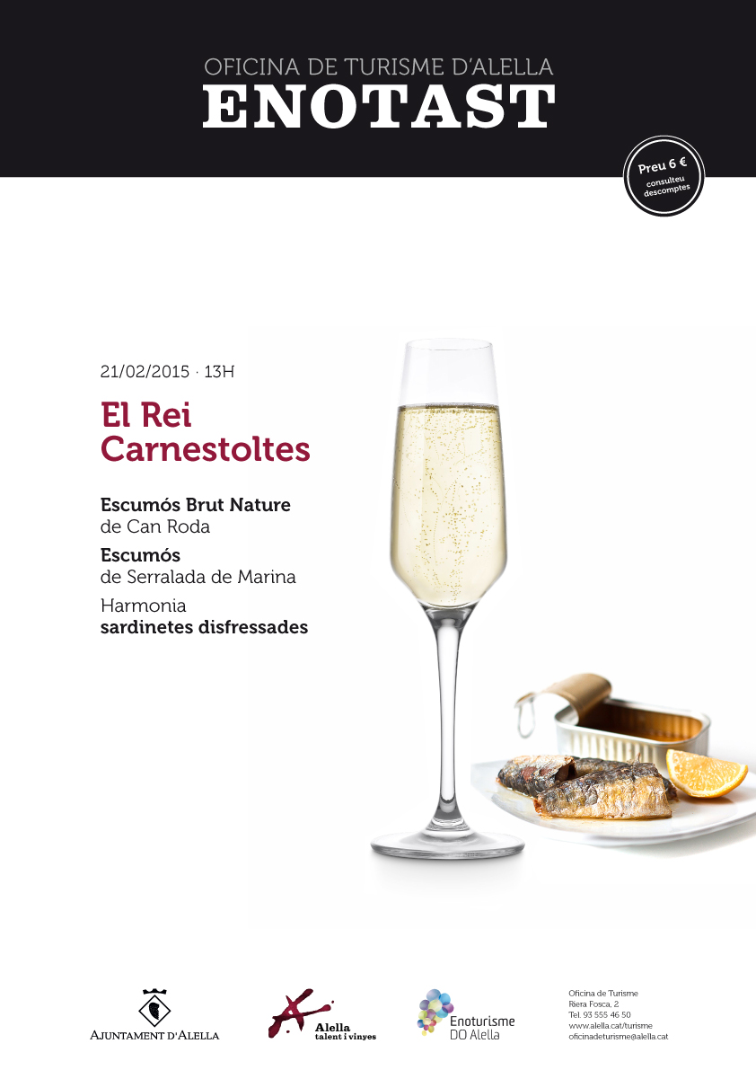 Enotast. El Rei de Carnestoltes. Tast d'Escumós Brut Nature (Can Roda) i Escumós (Serralada de Marina) amb sardinetes disfressades. Preu: 6 euros. Inclou el tast de 2 vins amb degustació gastronòmica.