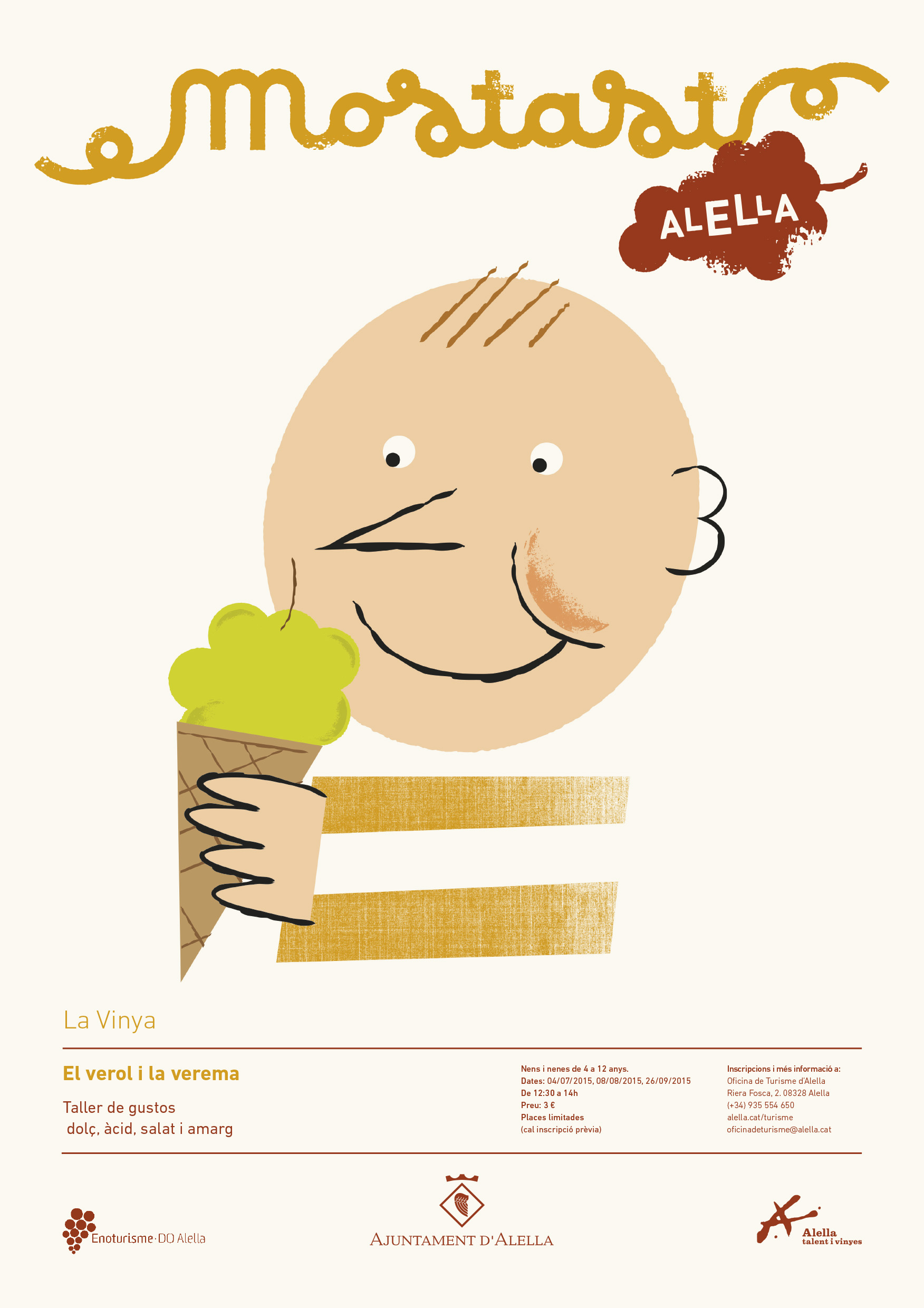 Mostast. Taller d'enologia per infants. Taller de gustos: dolç, àcid, salat i amarg (1a part). Taller didàctic, dirigit per una pedagoga i adreçat a infants de 4 a 12 anys amb jocs, manualitats i molta diversió! Cal inscripció prèvia ja que l'aforament està limitat a 15 places. Preu: 3 euros.