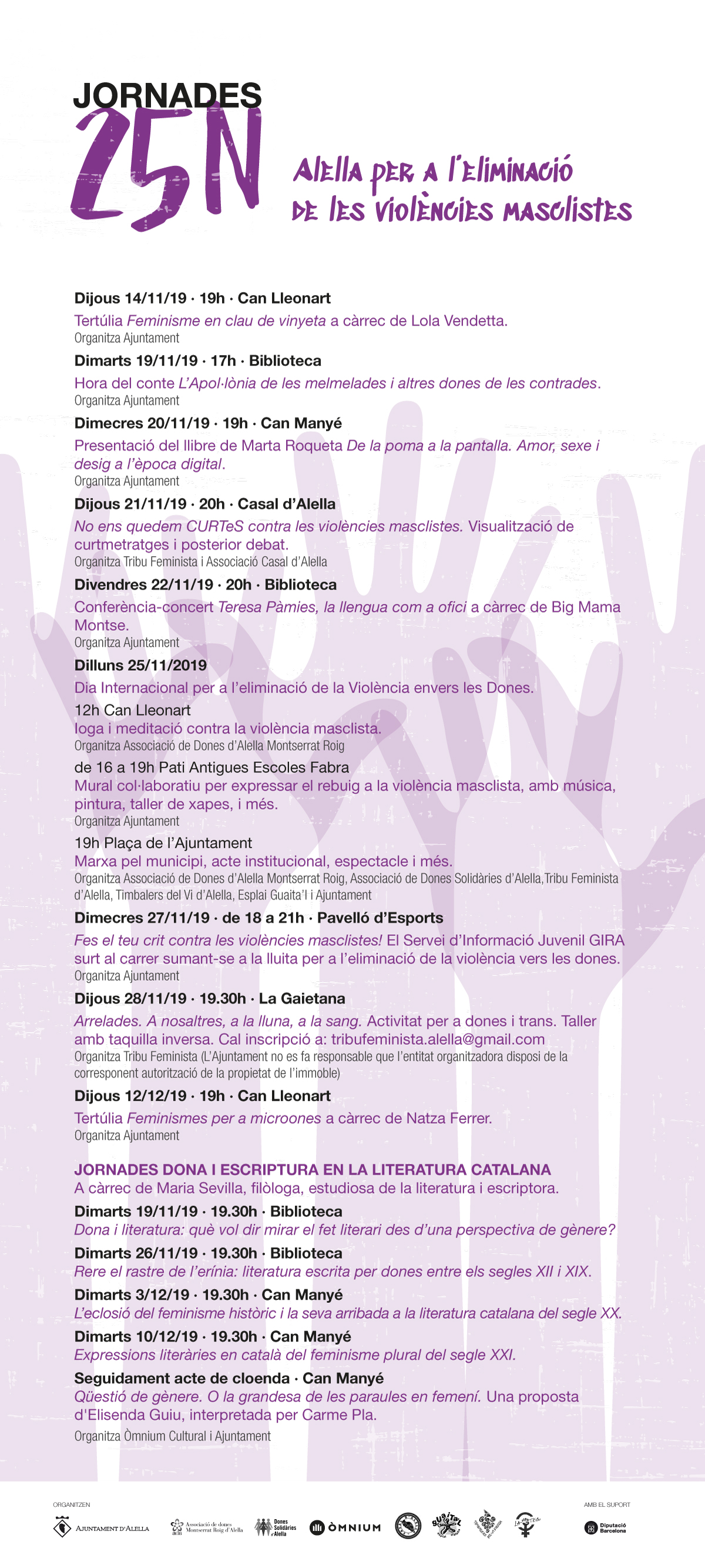 En aquesta sessió resseguirem l'estela de les escriptores catalanes que, al llarg del segle XX, i tot sovint a pesar de la seva condició de dones (Víctor Català, Clementina Arderiu, Maria Aurèlia Capmany, Mercè Rodoreda...), van fer possible, de manera més o menys programàtica, l'articulació d'una genealogia literària femenina (i feminista) en les lletres catalanes, que esclata i es fa palesa de manera definitiva i irreversible amb figures com la de Maria-Mercè Marçal.