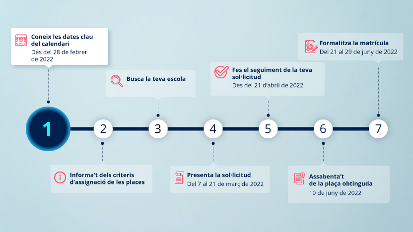 Aquest dilluns, 7 de març, comença el procés de preinscripcions a les escoles per al curs 2022-2023. Enguany, no coincideixen els terminis de preinscripcions dels tres cicles obligatoris d'ensenyament: el de segon cicle d'edució infantil (de 3 a 6 anys) i primària, i l'obligatori de secundària.