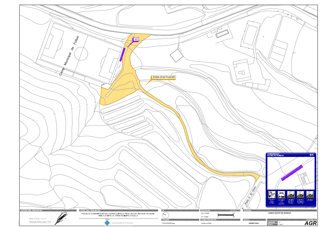 El projecte inclou la desbrossada i neteja de la zona, la demolició de tot el paviment asfàltic existent i la retirada d'elements superficials, l'excavació de la caixa de paviment i la formació de pendents per facilitar el drenatge. A més es construirà un mur de formigó per delimitar el carrer i es repavimentarà la calçada i la cuneta transitable amb formigó armat acolorit. També s'instal·larà enllumenat públic en tot el vial.