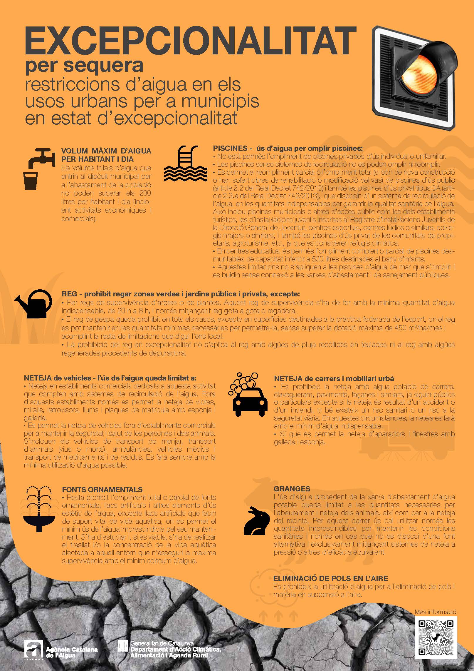 L'Ajuntament ha iniciat els tràmits per posar al dia el Reglament del servei d'abastament d'aigua potable del municipi, vigent des de l'any 1972, per adaptar-lo als requeriments actuals i incloure els nous supòsits derivats de les darreres restriccions i regulacions establertes per la Generalitat de Catalunya en relació amb la sequera.