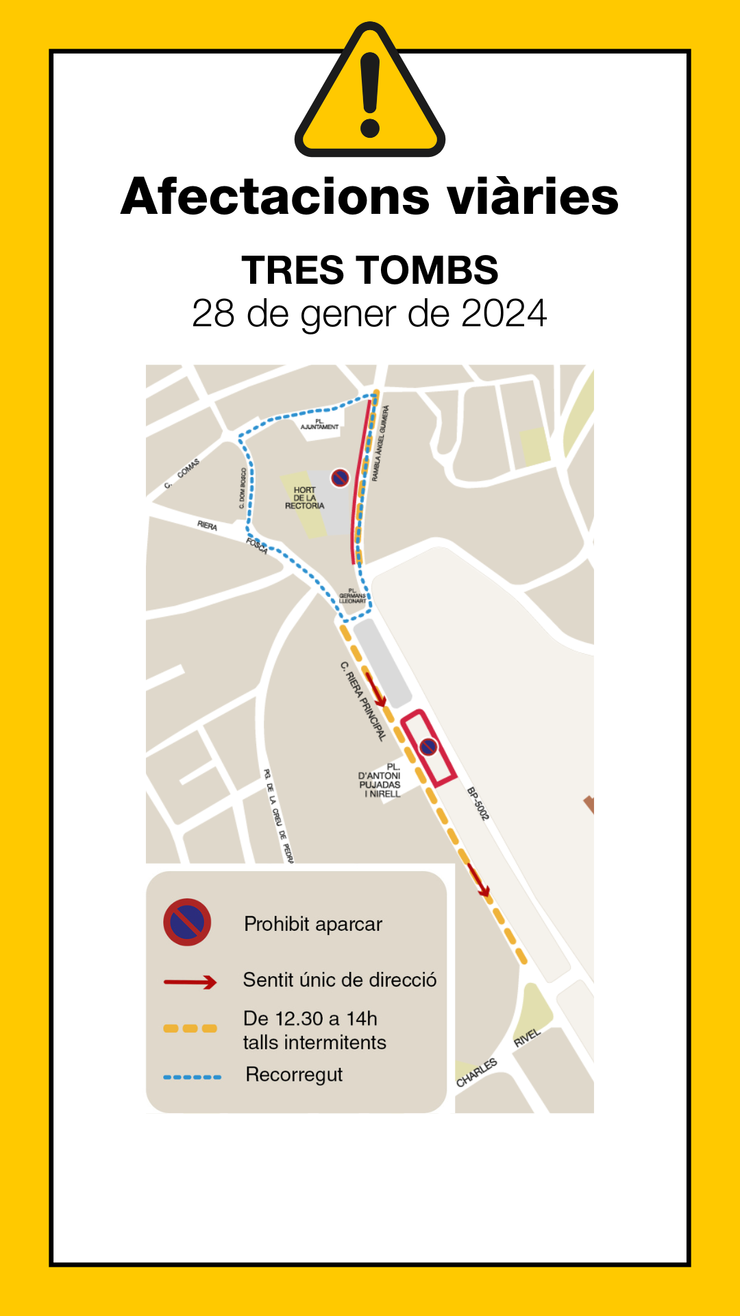 AFECTACIONS VIÀRIES AMB MOTIU DE LA CELEBRACIÓ DELS TRES TOMBS EL DIUMENGE 28 DE GENER DE 2024