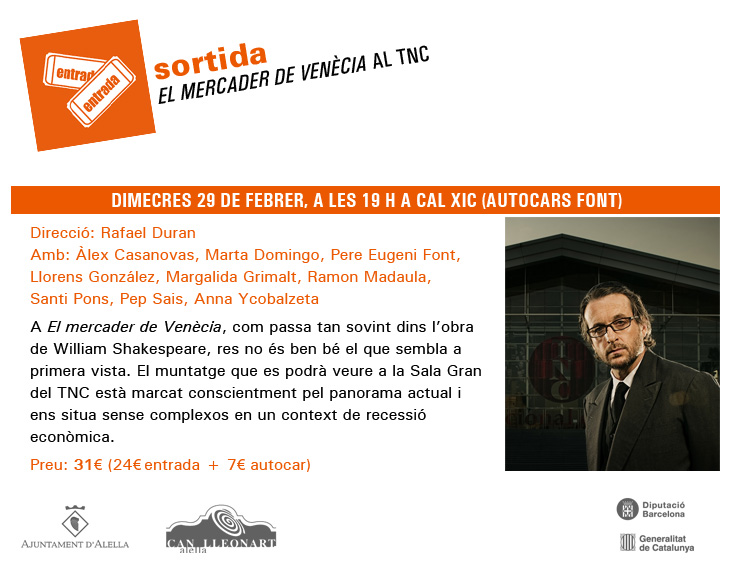 A El mercader de Venècia, com passa tan sovint dins l'obra de William Shakespeare, res no és ben bé el que sembla a primera vista. Des de l'epítet de «comèdia romàntica» que acompanya el títol de l'obra en la seva primera edició (1600) fins al perfil de Shylock, un dels jueus més memorables de la història de la literatura dramàtica, tot és tan complex i relatiu que ens priva de refugiar-nos en etiquetes i esquematismes. El muntatge que es podrà veure a la Sala Gran, dirigit per Rafel Duran, està marcat conscientment pel panorama actual i ens situa sense complexos en un context de recessió econòmica.