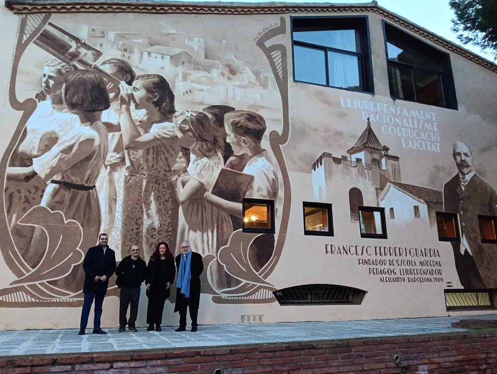 El recorregut s'ha iniciat a l'Hort de la Rectoria amb la inauguració del mural gegant elaborat per l'artista Roc Blackblock, un treball que recull i immortalitza en una imatge el llegat educatiu de Ferrer i Guàrdia i la seva vinculació amb el poble. L'obra, situada a l'altre costat de la Biblioteca Ferrer i Guàrdia, a més de reivindicar i posar en valor la seva figura, permet recuperar la memòria històrica i transmetre-la a les noves generacions d'alellencs i alellenques que transiten diàriament per aquest espai públic.
