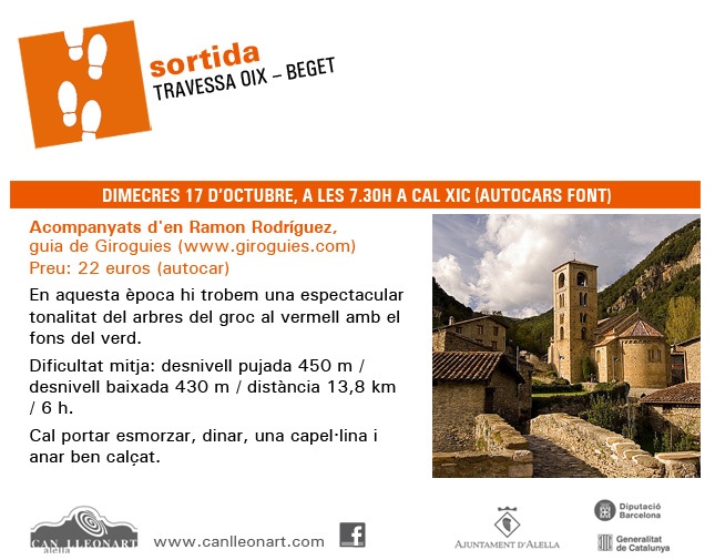 Bonica travessa per l'Alta Garrotxa d'Oix fins a Beget, dos pobles emblemàtics i que ens sorprendran pel seu aspecte tradicional de poble de muntanya. Pel camí veurem ermites romàniques, arbres monumentals, masos plens d'història, camins centenaris i natura sempre al voltant nostre. En aquesta època hi trobem una espectacular tonalitat del arbres del groc al vermell amb el fons del verd.