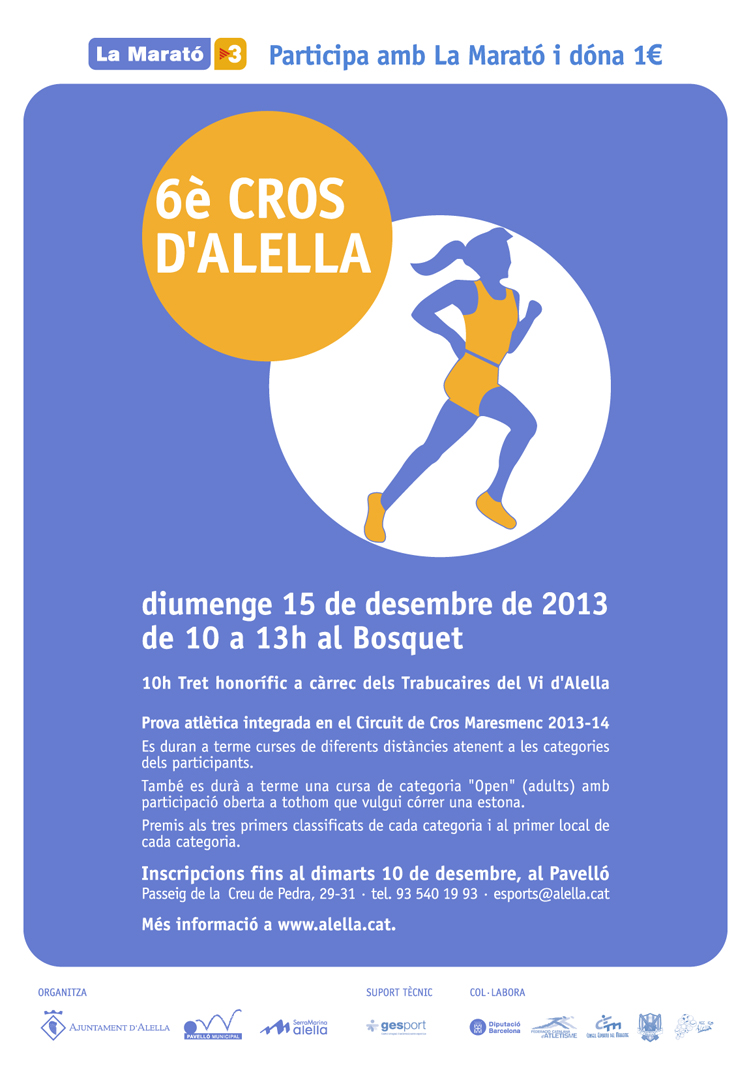 La zona del Bosquet es tornarà a convertir el diumenge 15 de desembre en un circuit d'atletisme on podran posar a prova la seva velocitat i resistència esportistes de diferents edats i categories, en el 6è Cros d'Alella. Els Trabucaires del Vi d'Alella seran els encarregats de donar el tret de sortida a la primera cursa de la prova a les 10h.