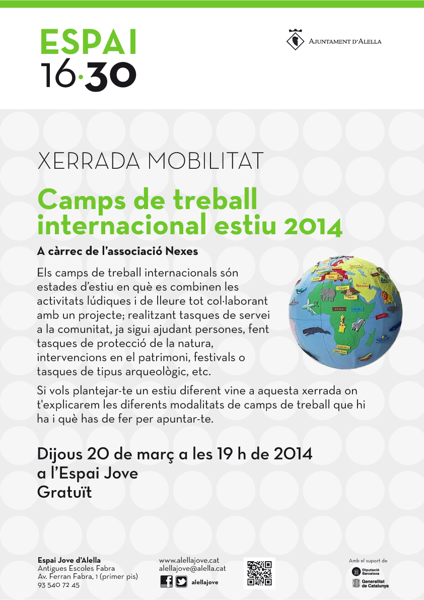 A càrrec de l'Associació Nexes. Els camps de treball internacionals són estades d'estiu en què es combinen les activitats lúdiques i de lleure tot col·laborant amb un projecte; realitzant tasques de servei a la comunitat, ja sigui ajudant persones, fent tasques de protecció de la natura, intervencions en el patrimoni, festivals o tasques de tipus arqueològic, etc.