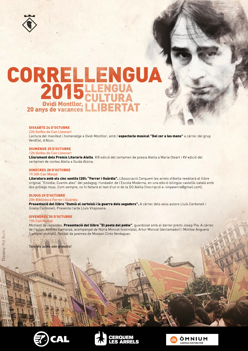 Organitza: Ajuntament d'Alella, CAL, Cerquem les Arrels i Òmnium Cultural